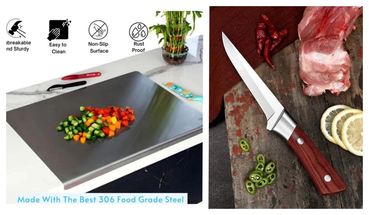 HÅLLBAR & LÅNGVARIG: Tillverkad av högkvalitativt rostfritt stål, denna bräda är byggd för att klara av tung användning utan att slitas ut.