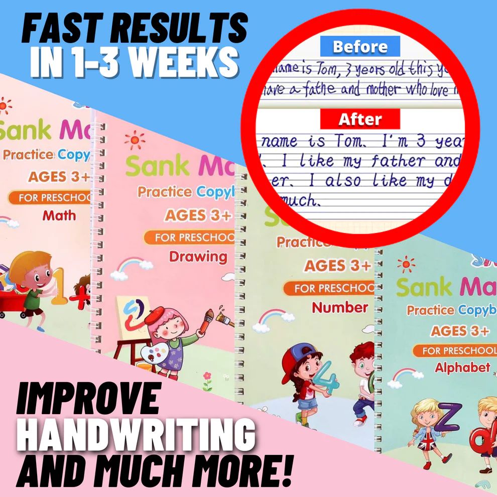 Om du väljer vårt paket med 4 böcker: Ditt barn kommer att börja sitt snabba lärande inom matematik, handskrivning, visuella färdigheter, motoriska färdigheter, teckning och allmänna inlärningsfärdigheter.