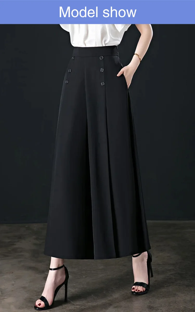 - De lösa byxorna med vida ben smickrar dina ben och får dig att se lång och smal ut. Lämplig för alla kroppstyper.