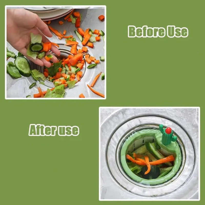Tryck lätt på kaktusens huvud så försvinner alla köksrester i filtret! Inget mer besvärligt handrengöring.