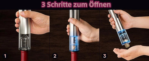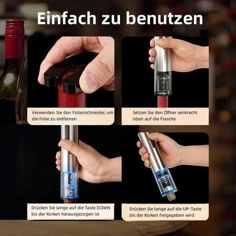 ✅Lätt och snabb användning: Den elektriska vinöppnaren kan enkelt ta bort korken på 6 sekunder genom att helt enkelt trycka på "ner" och "upp" knapparna.