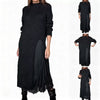 ELEGANT LAGER-Pà -LAGER-STIL: Omfamna en chic, sofistikerad estetik med denna genomtÀnkta tvÄdelade ensemble. Den lÄnga, mjuka tröjan lÀggs sömlöst över en flödande klÀnning med spaghettiband, vilket skapar en avslappnad look. Denna kombination erbjuder bÄde vÀrme och ett tydligt modeuttryck, perfekt för övergÄngen mellan sÀsongerna.