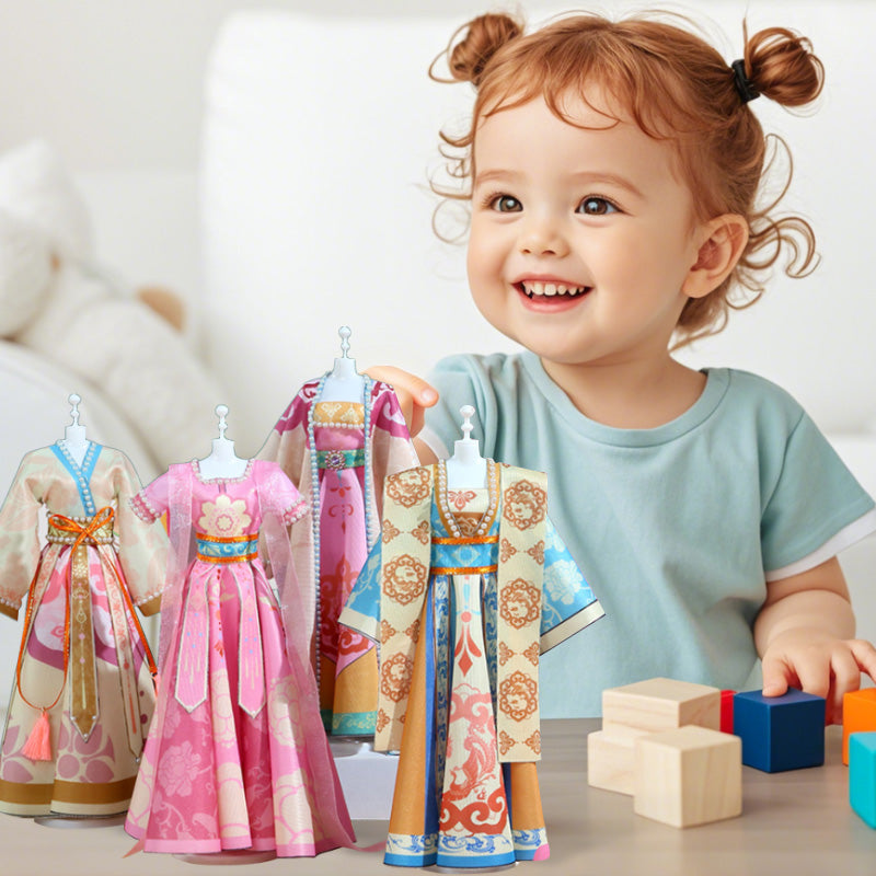 KULTURELL UPPTÄCKTSFÄRD – Detta DIY-leksakskit erbjuder barn en praktisk metod för att utforska det kinesiska kulturarvet. Det innehåller allt material som behövs för att skapa färgglada kläder, vilket ökar den kulturella förståelsen samtidigt som det kombinerar konst och mode på ett roligt sätt.