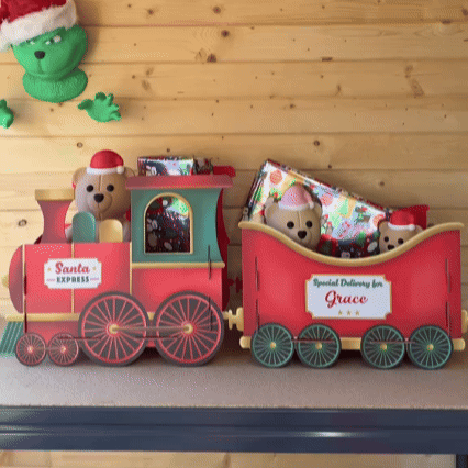 SĂ€g adjö till trĂ„kiga presentaskar och hej till Tomtens presenttĂ„g â ett fantasifullt pepparkaksliknande jultĂ„g som Ă€r byggt för att bĂ€ra din familjs glĂ€dje . Med rymliga vagnar designade för att hĂ„lla presenter, godis eller plyschleksaker, och anpassningsbara namnklistermĂ€rken , blir detta tĂ„g en hjĂ€rtevĂ€rmande del av din jultradition.