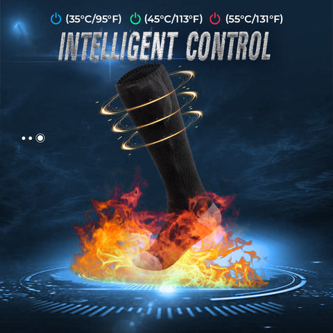 De uppvärmda strumporna har 3 temperaturinställningar som du kan välja mellan beroende på vad du föredrar för att hålla fötterna varma och sköna. Justera dina elektriska värmesockor till antingen lågtemperaturläge (35°C/95°F), medeltemperaturläge (45°C/113°F) eller högtemperaturläge (55°C/131°F). Du kan lita på att dessa uppvärmda stövelstrumpor håller dina tår bekväma oavsett hur kallt det är.