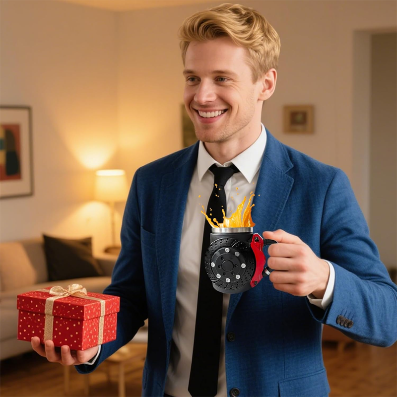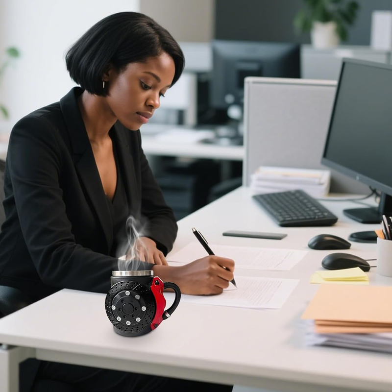 UNIK BILINSPIRERAD ESTETIK - Visa din passion för bilar med en slående design av en bromsskiva och ett rött bromsok, vilket ger en djärv touch till din dagliga rutin. Denna mugg sticker ut.