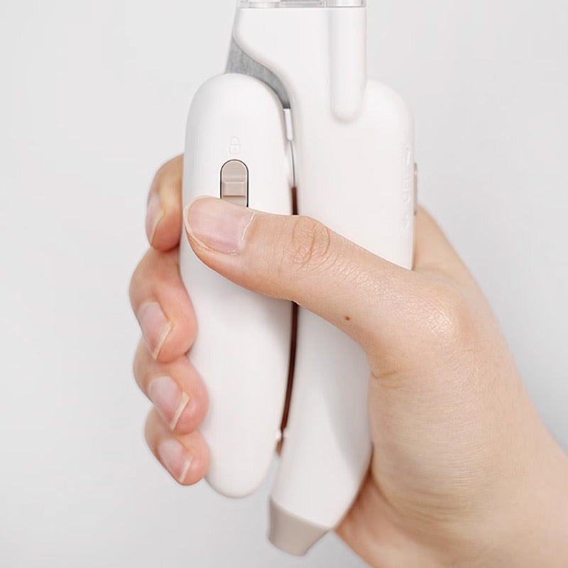 Glidlåsdesign - Låsning och upplåsning genom att glida, vilket minskar produktens volym när den inte används och förhindrar oavsiktliga skador. Denna glidlåsningsdesign gör hund- och katt nagelklippare lätta att förvara och bära.