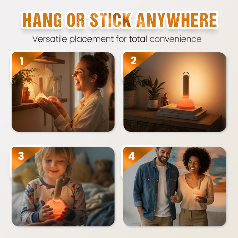 FLEXIBLA MONTERINGSALTERNATIV- Har en upphängningsögla och en stark sugproppsfot för flexibel placering. Häng den på en krok eller fäst den på en slät yta som en kakelvägg eller sänggavel för bekväm, handsfree-belysning.