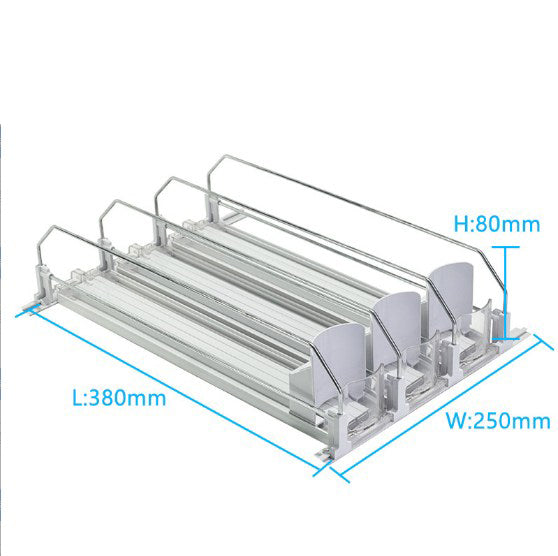 Dryckesstället för kylskåp har en utdragbar funktion som gör att du inte behöver sträcka dig långt in i kylskåpet för att hämta dina drycker. När du tar ut den första drycken som placerats i kylskåpets läskdispenser glider dryckerna längst bak automatiskt ut för enkel åtkomst.