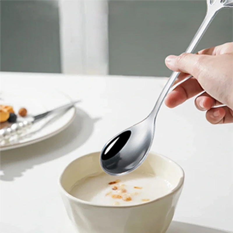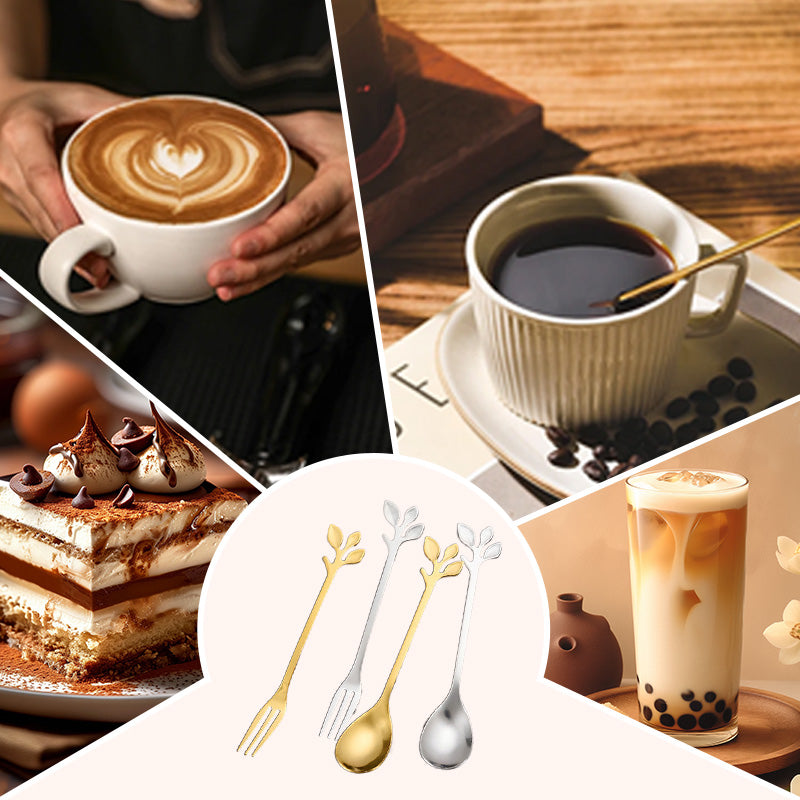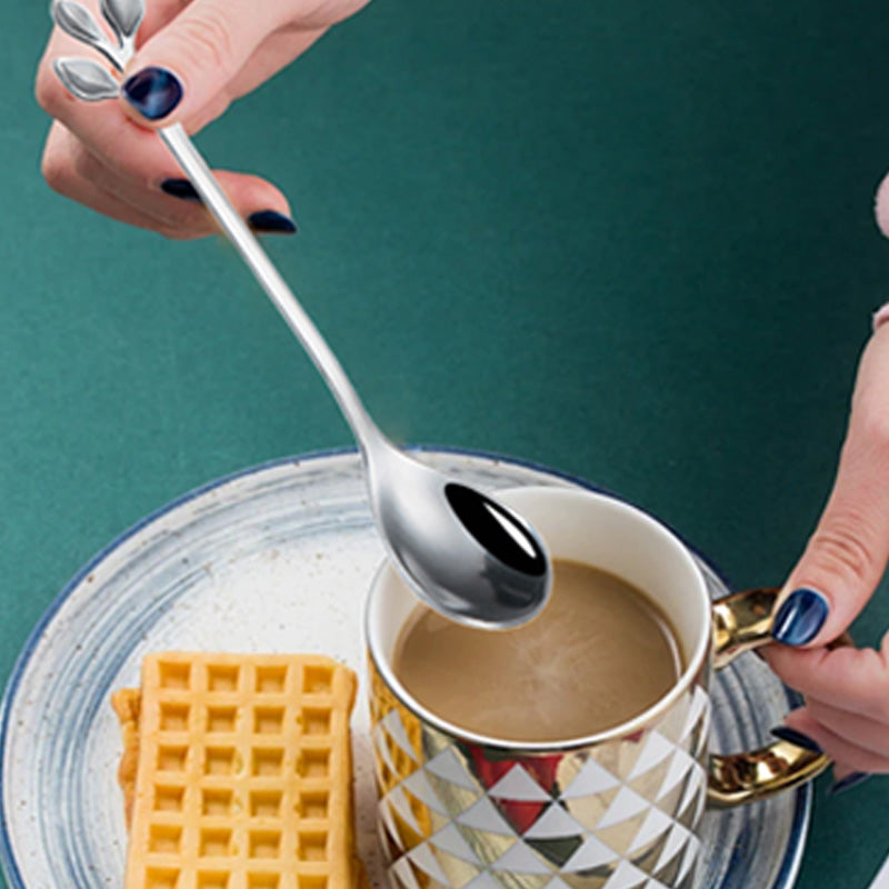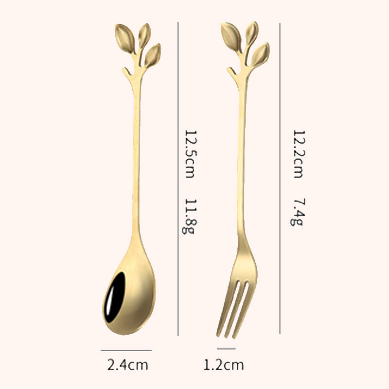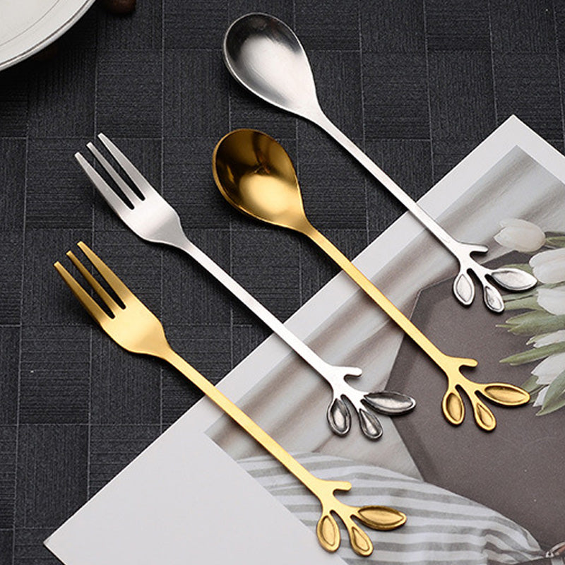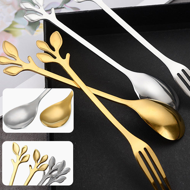 Vintage-Löffel & -Gabel aus Edelstahl mit Blattmotiv